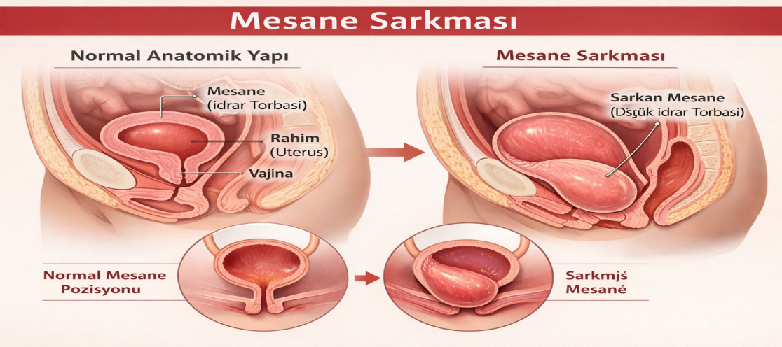Mesane sarkması, pelvik taban yapısındaki zayıflamaya bağlı olarak ortaya çıkan ve idrar fonksiyonlarını doğrudan etkileyen önemli bir sağlık sorunudur. Pelvik taban cerrahisi ile zayıflamış destek yapıları onarılarak mesane yeniden normal konumuna getirilir ve idrarla ilgili şikâyetlerin giderilmesi amaçlanır.